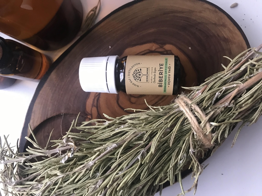 Biberiye (Rosmarinus officinalis) bitkisinin yaprakları distilasyondan geçirilerek tamamen doğal metodlarla nane uçucu yağı elde edilmiştir