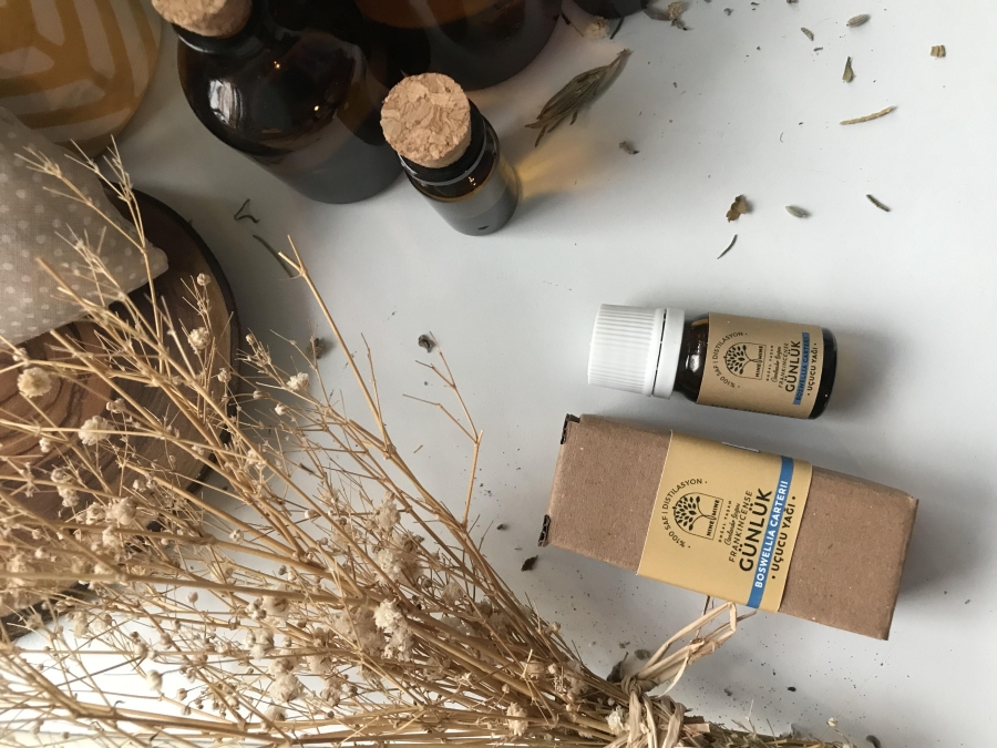 Günlük (Sığla/Frankincense) (Boswellia carterii) ağacının reçinesi distilasyondan geçirilerek tamamen doğal metotlarla elde edilmiştir.
