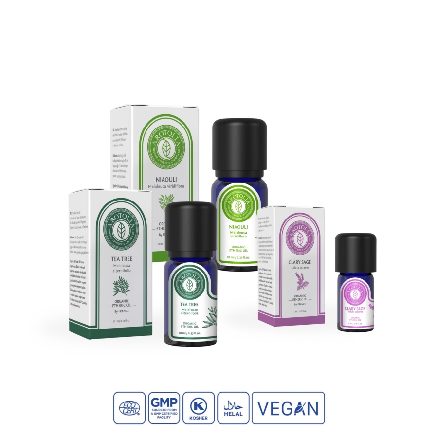 Arotolia Kadın Sağlığı Seti; Niaouli’nin ferahlatıcı etkisini, Çay Ağacı’nın saf arındırıcılığını ve Misk Adaçayı’nın yumuşak, dengeli kokusunu bir araya getirir.