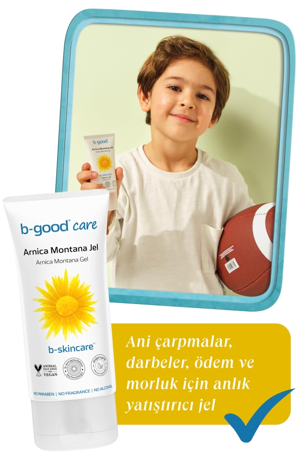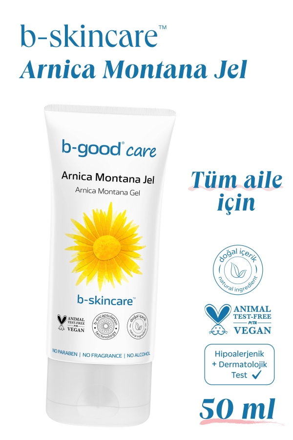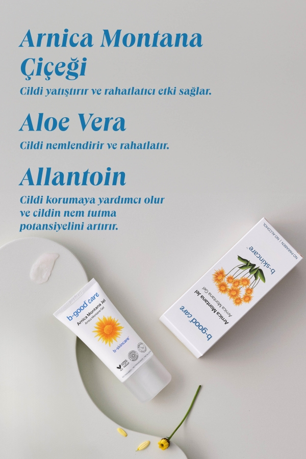 b-good b-skincareTM Arnica Montana Jel, Arnica Montana çiçeği içeriği ile ferahlık hissi sağlar ve cildin rahatlatılmasına yardımcı olur. Renklendirici, silikon, alkol ve esans içermeyen vegan formülündeki Aloe Vera ve allantoin içeriği ile cildi nemlendirir ve canlandırılmasına katkı sağlar. Tüm cilt tiplerinde yüz ve vücutta günlük kullanıma uygundur.