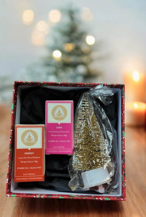 Yeni yılın taze başlangıcını ve sıcak duygularını bir arada sunan bu özel aromaterapi seti; Energy uçucu yağı ile canlandırıcı bir ferahlık, Love uçucu yağı ile kalbi ısıtan bir enerji sağlar. Işıklı mini çam ağacı süsü, ortama yılbaşı büyüsü katarken; kabartmalı yeni yıl temalı kutu seti hem şık hem de hediye etmeye hazır hâle getirir.