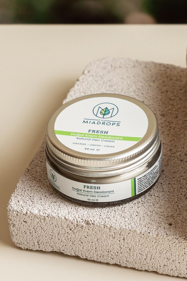 Gelince Haber VerFRESH Doğal Krem Deodorant, doğal kaynaklı içeriği ile terlemeyi engellemeden, ter kokusu oluşumunu önler. Portakal, limon ve sedir esansiyel yağları ile ferah ve narenciye bir koku verir. Fresh Doğal Krem Deodorant ile vücut doğal döngüsünde terlemeye devam eder ancak kötü ter kokusu oluşmaz. Alüminyum ve türevlerini içermeyen formülü ile cildi tahriş etmez, gözenekleri tıkamaz. Hassas ciltlerin kullanımına uygundur.