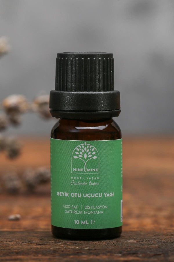 Geyik Otu (Satureja montana) cinsi fidelerden toplanan yaprak ve çiçekler distilasyondan geçirilerek tamamen doğal metodlarla geyik otu uçucu yağı elde edilmiştir. %100 saf ve doğaldır.