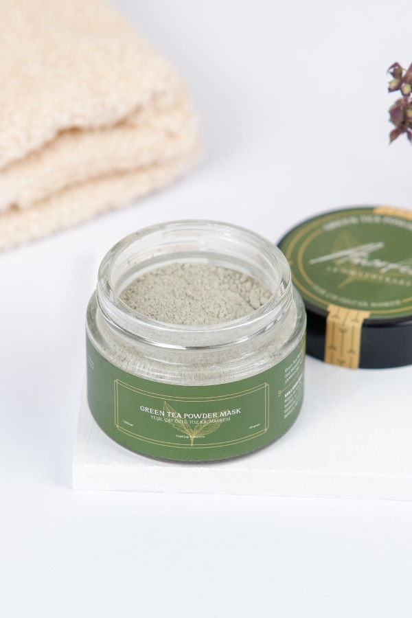 gözenekleri temizler, cildi ölü deriden arındırır.İçeriğindeki özel bileşenler, cildi arındırır, sakinleştirir ve canlandırır. Cildinizi yeniden canlandırırken, sağlıklı bir ışıltı kazanmanıza yardımcı olur. Bu toz maske, montmorillonit kil ve yeşil çay yaprağı ekstresi gibi doğal içeriklerle zenginleştirilmiştir. Cildi temizler, gözenekleri sıkılaştırır ve yağ dengesini düzenler. Aloe vera ve allantoin gibi nemlendirici ve yatıştırıcı bileşenler cildinizi besler ve yumuşatır. Green Tea Powder Mask, özelleştirilebilir bir maske olarak kullanılır. Suyun, gül suyunun veya bitkisel bir infüzyonun (örneğin, papatya çayı veya lavanta çayı) eklenmesiyle kolayca karıştırılır ve kıvamı ayarlanabilir. Cilt tipinize ve ihtiyaçlarınıza göre uygun yoğunlukta bir maske elde etmenizi sağlar.