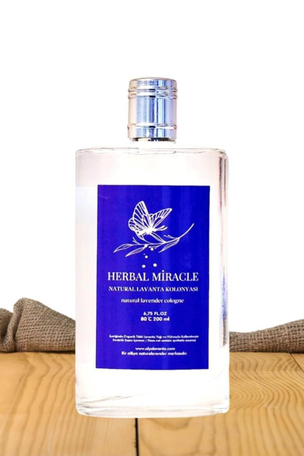 Natural Lavanta Kolonyası, TR ve AB organik sertifikalı Lavanta yağı, Lavanta hidrosolü (lavanta çiçek suyu) ve 80 derece etil alkolden üretilmiş olup sentetik esans yada koruyucu madde içermez. Lavanta yağının antiseptik özelliği sayesinde cildinizi tahriş etmez, hijyen ve ferahlık sağlar.