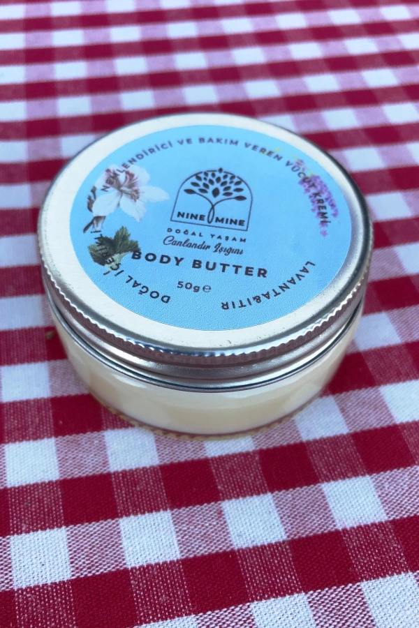 %100 Doğal Bakım Kremi - Yağ bazlı Shea yağı, hindistan cevizi yağı, avokado yağı, tatlı badem yağı, nar çekirdeği yağı, kakao yağı, lavanta uçucu yağı, vanilya uçucu yağı ve ıtır uçucu yağı.